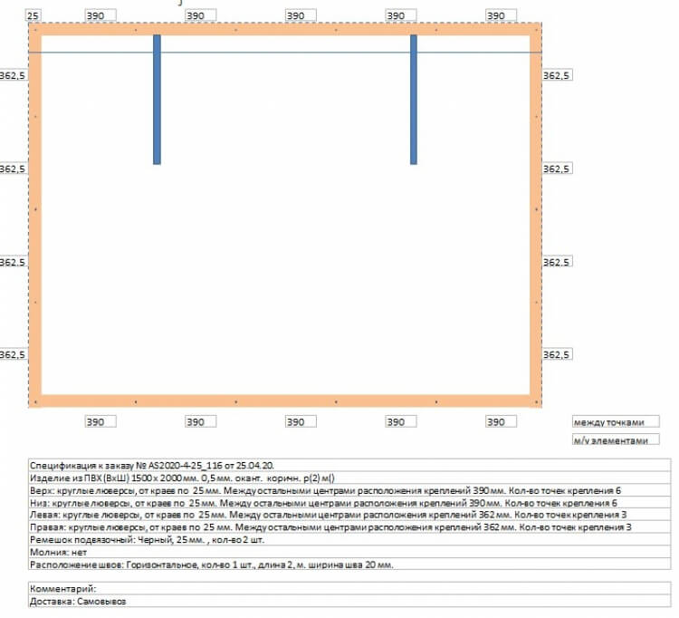 Изделие размером 1500х2000 мм. из пленки толщиной 0,5 мм.